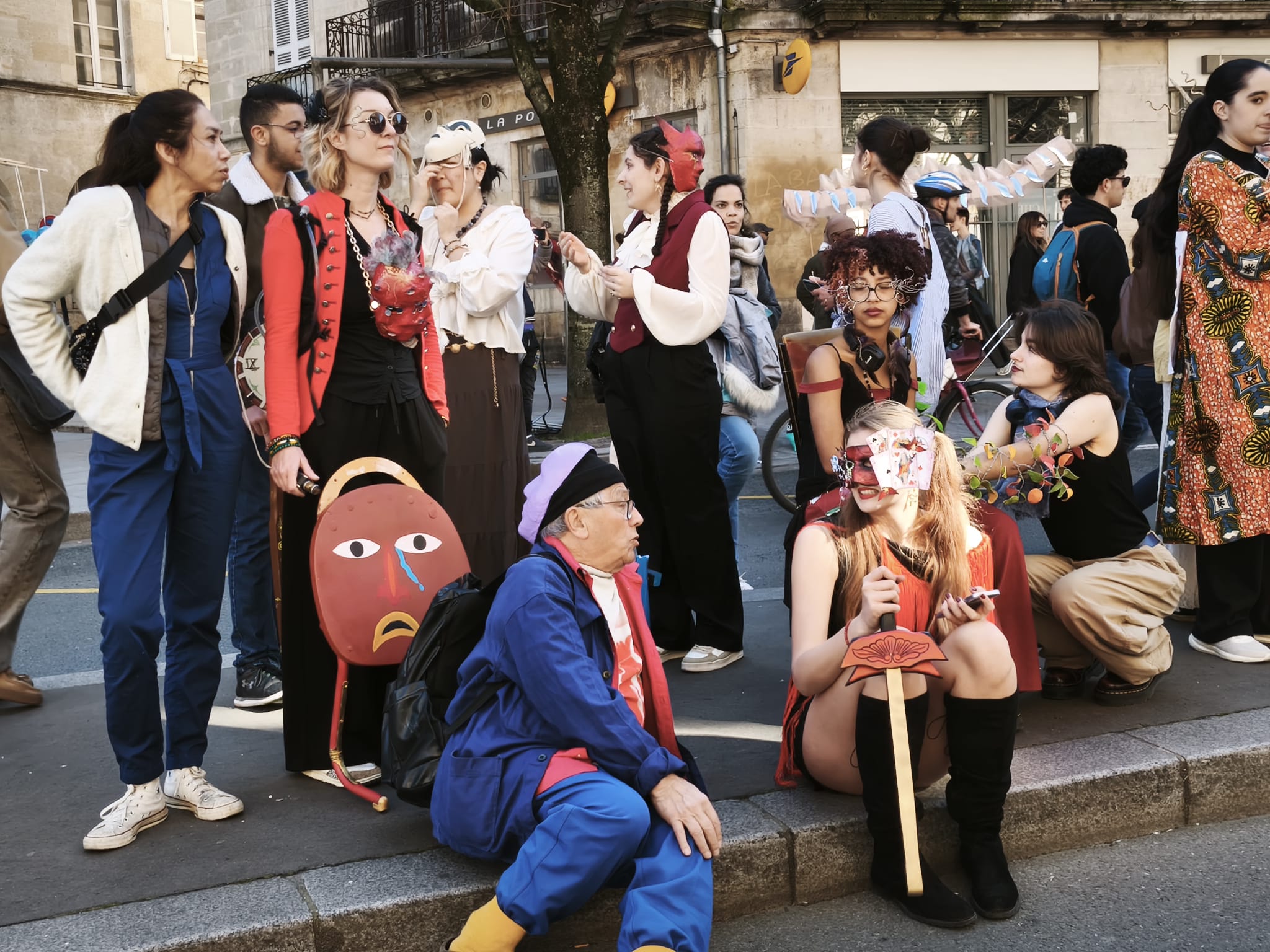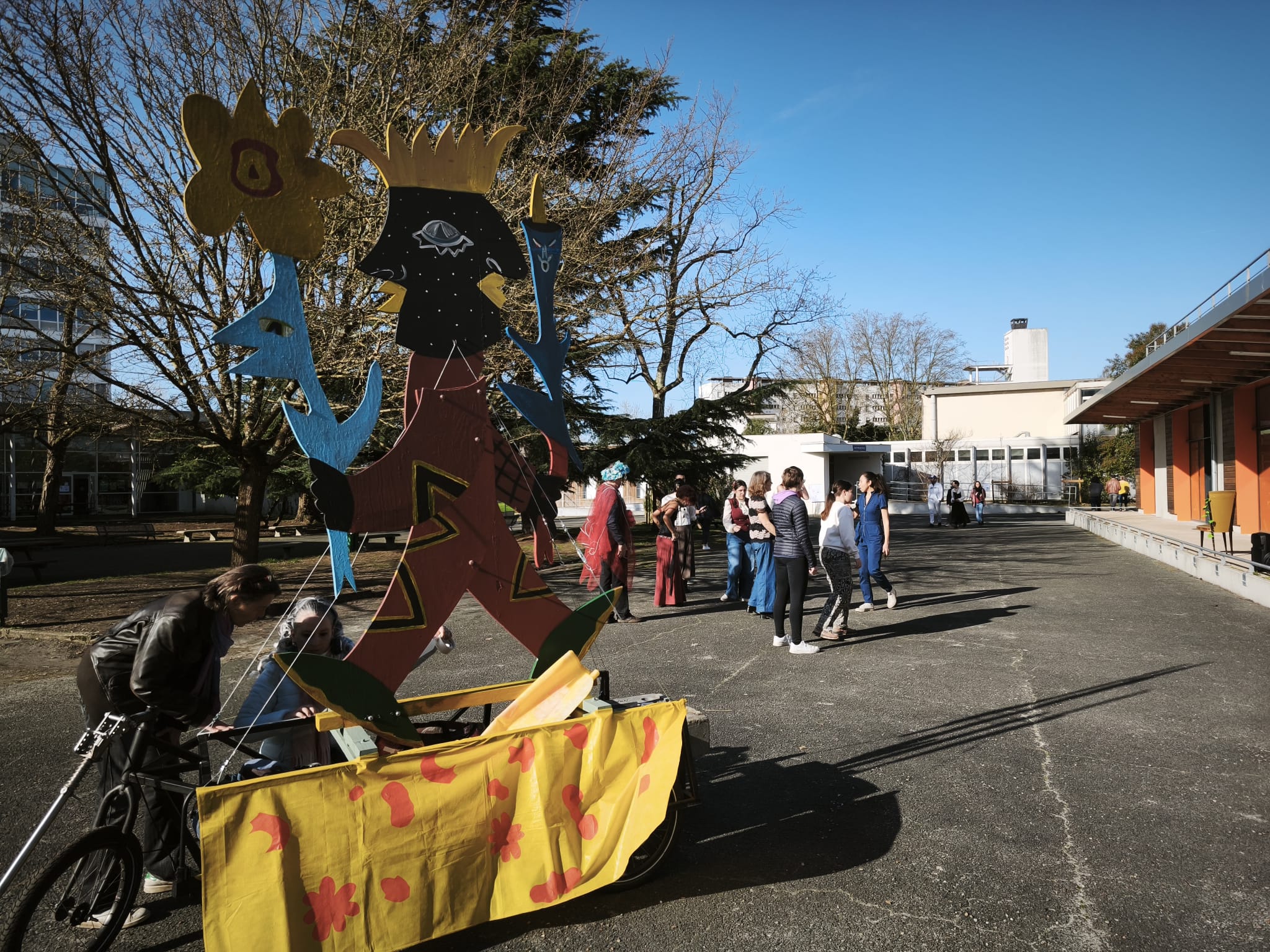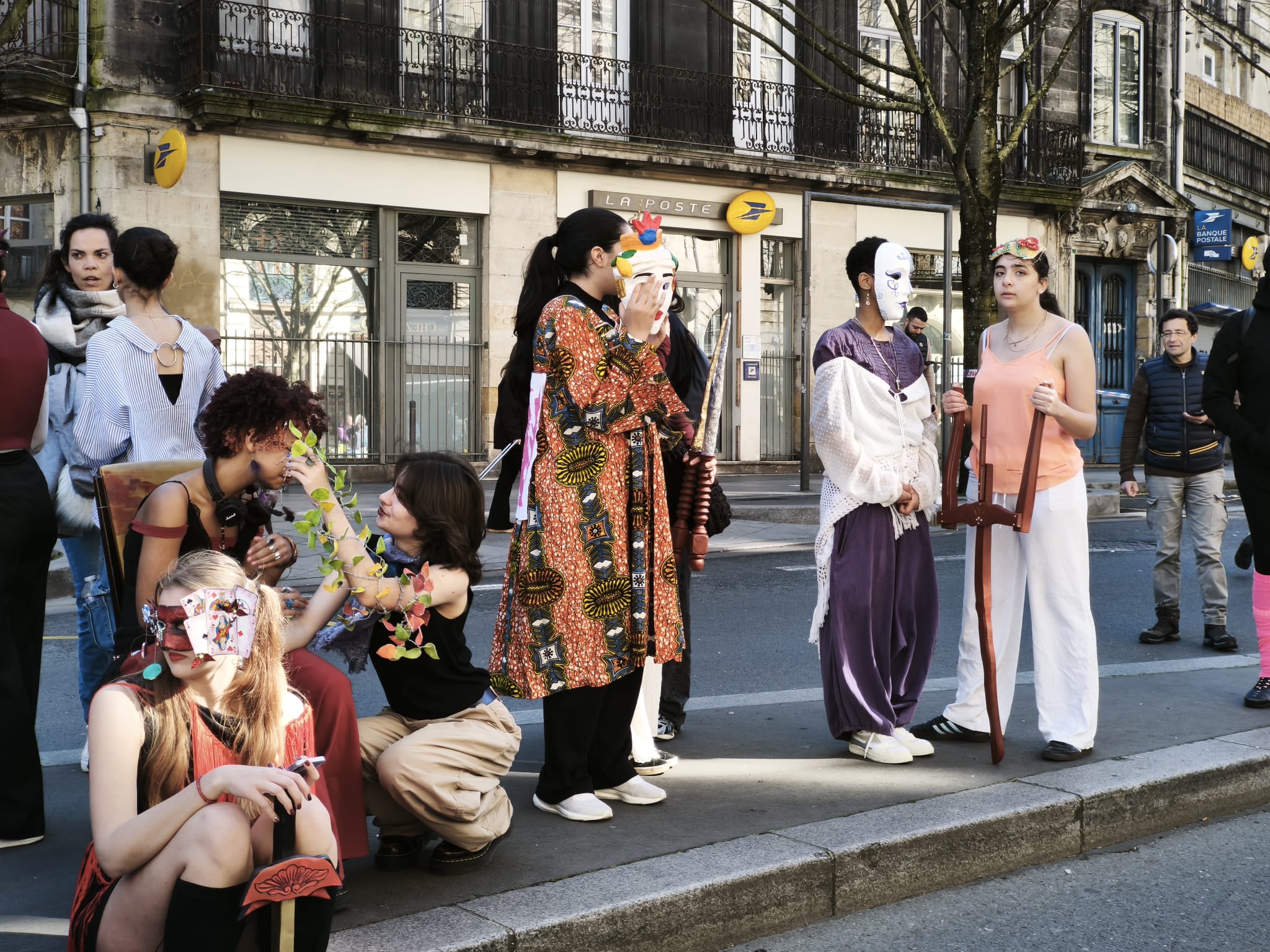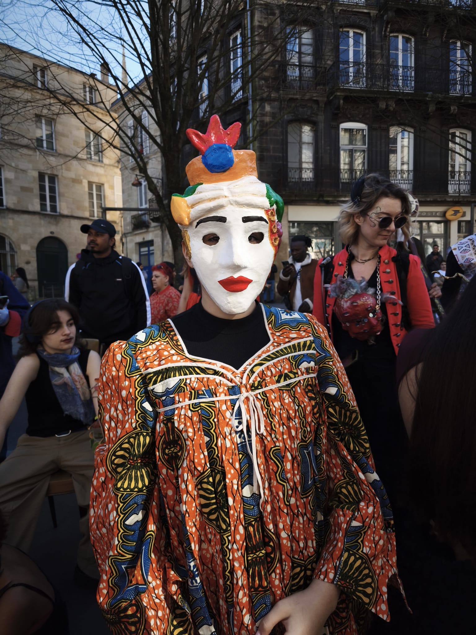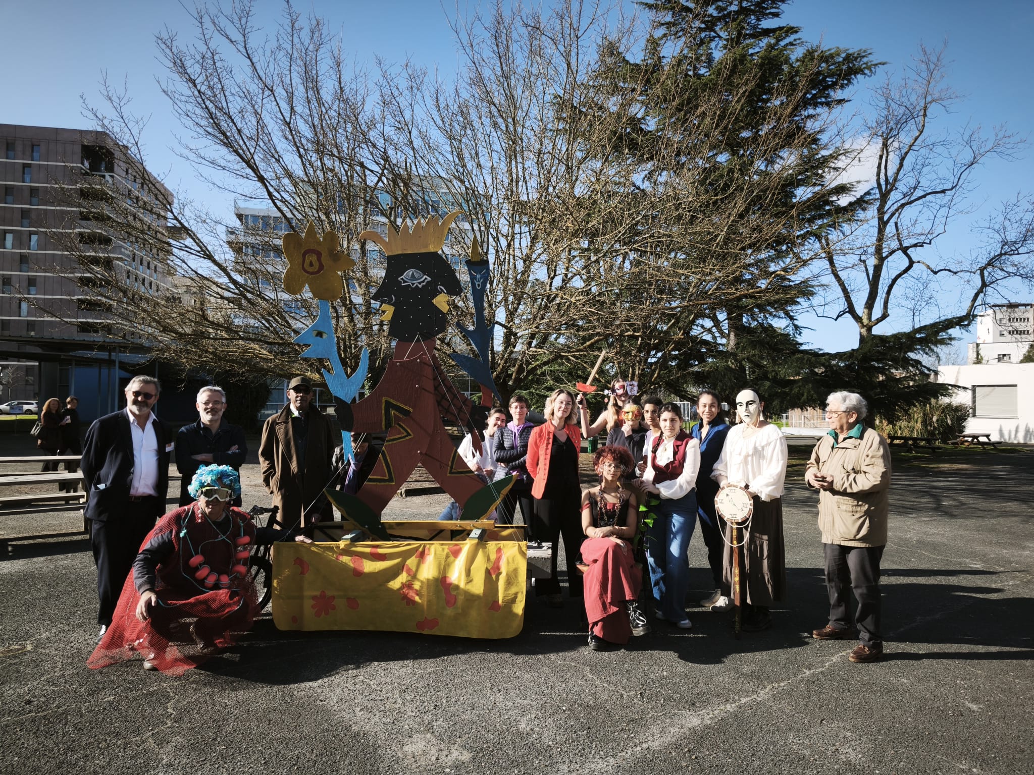 Les élèves du groupe Arts Plastiques de Première ont participé au Carnaval de Bordeaux ce dimanche 01 mars, avec leurs enseignants Sylviane Dubois Hespel, Laura Guerra Serres et Benoît Dupin. Depuis début janvier ils ont fabriqué des masques et transformé des chaises, le tout en s’inspirant de l’oeuvre de l’artiste William Adjete Wilson qui était présent au lycée vendredi et samedi et au Carnaval dimanche. Cette action a été menée avec l’association Mc2a, le Garage moderne et la batucada Zumbi Rei.