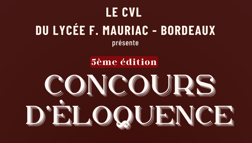 Le CVL du lycée François Mauriac est ravi de vous annoncer la cinquième édition de son Concours d’Éloquence ! Cet événement incontournable se tiendra le jeudi 7 mai 2026 (?) à la Maison Cantonale de la Bastide – Bordeaux.